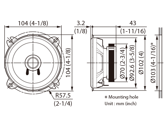 | Size | 16cm dual cone speakers | 13cm dual cone speakers | 10cm dual cone speakers |