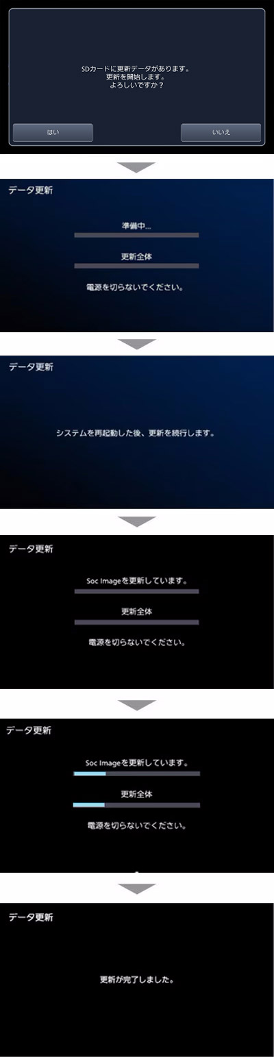 - 「いいえ」を押すとアップデートをキャンセルします。アップデートをやり直す場合は、2の手順に戻ってください。