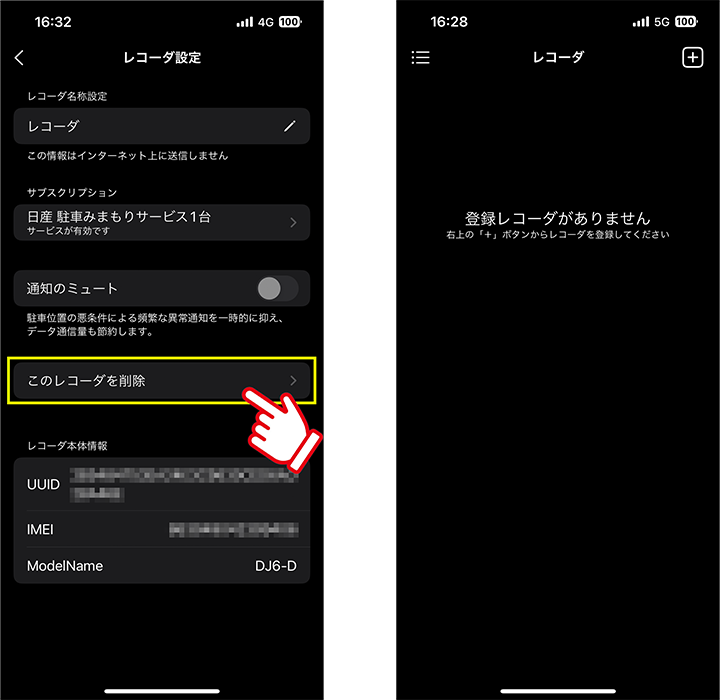 「このレコーダを削除」をタップします。