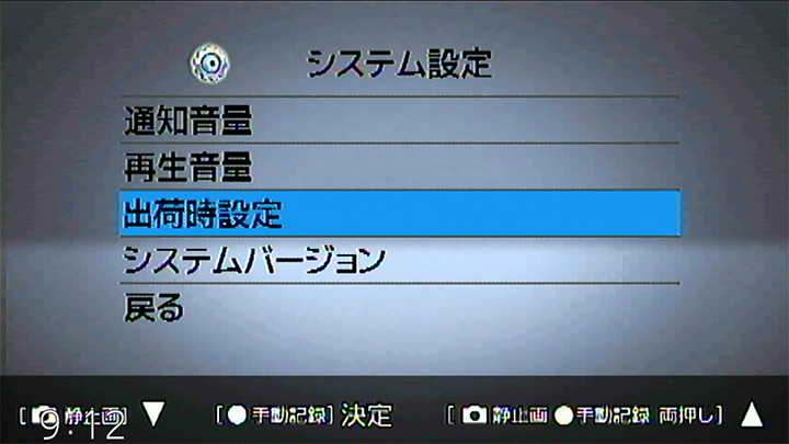 出荷時設定を選択します。