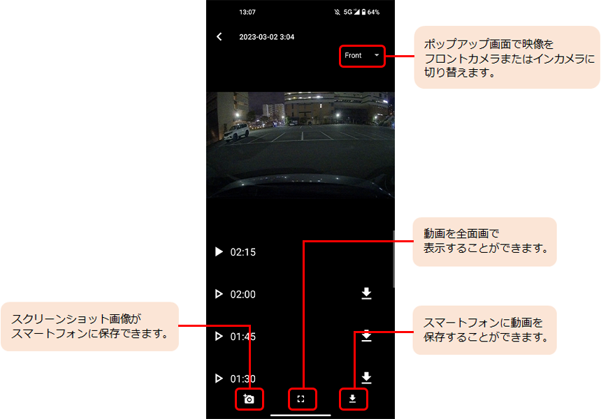 30日経過後も対象の駐車録画を視聴したい場合は、スマートフォンに書き出しを行ってください。