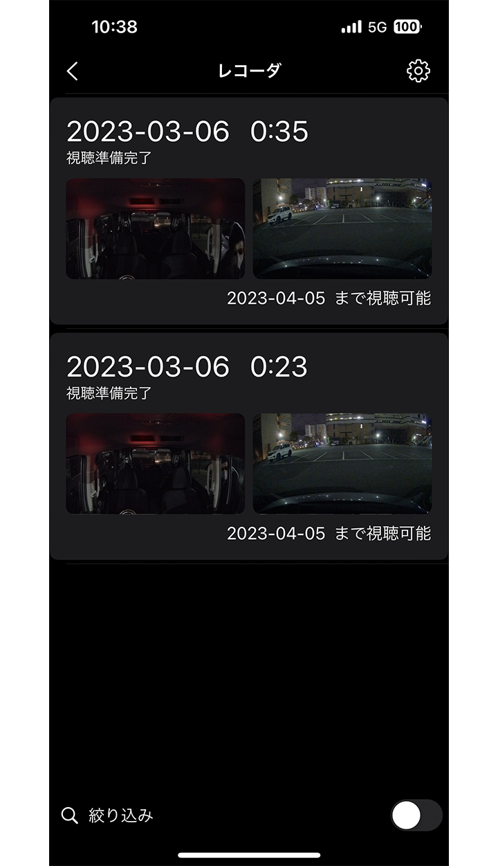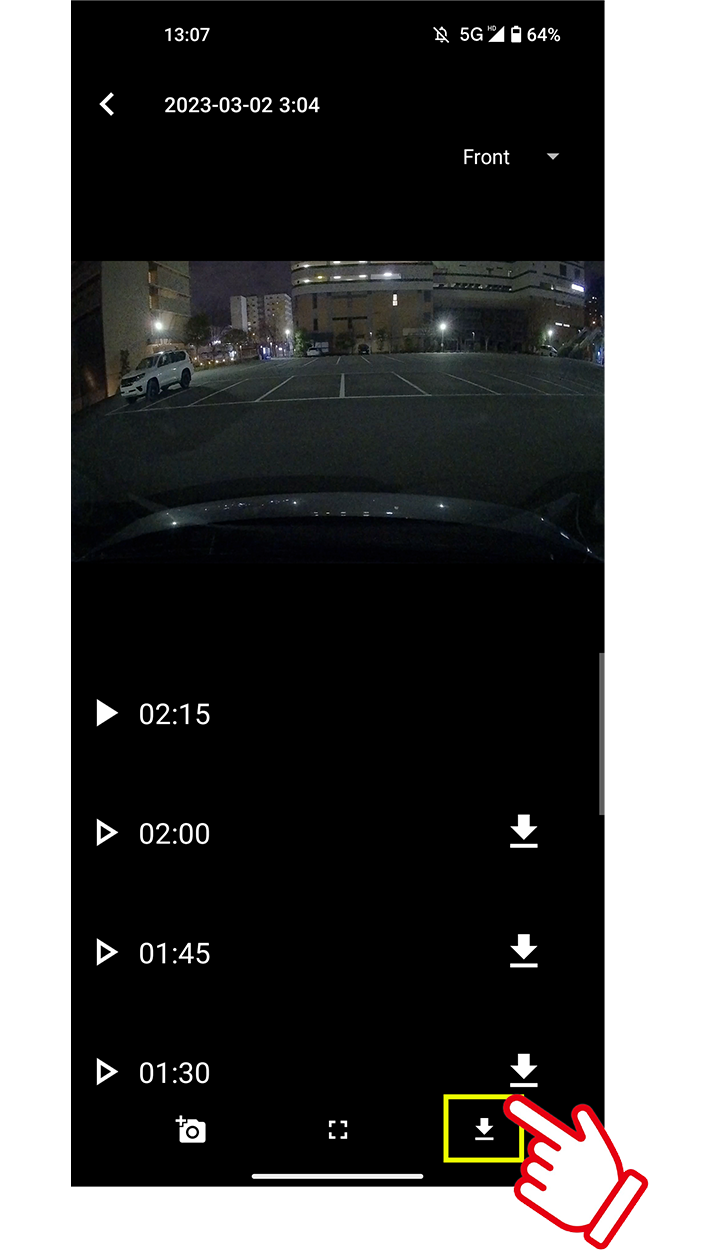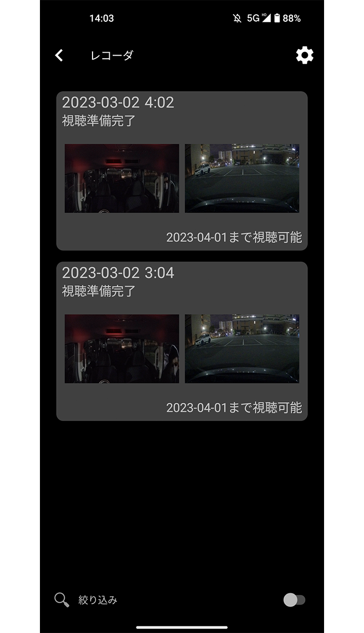 connectDRアプリが起動し、通知された駐車録画のファイルリストが順に表示されます。