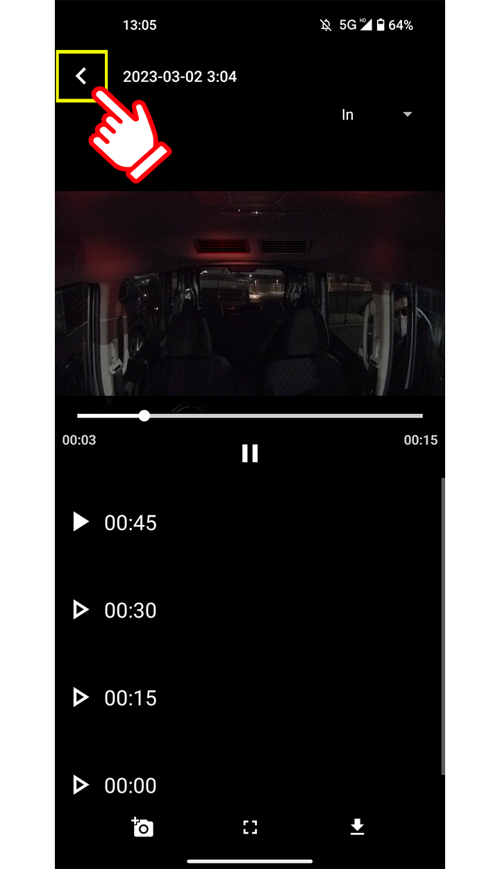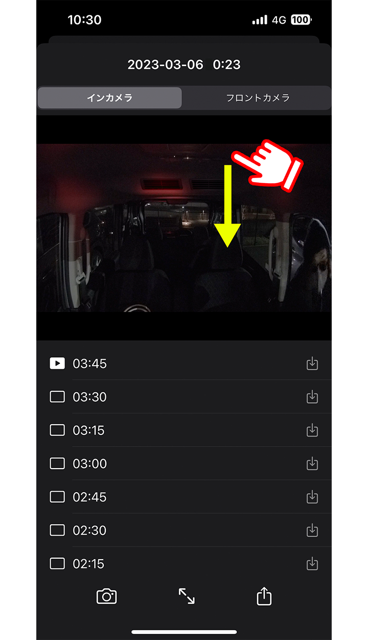 駐車録画一覧に戻る場合は、下方向にスワイプします。
