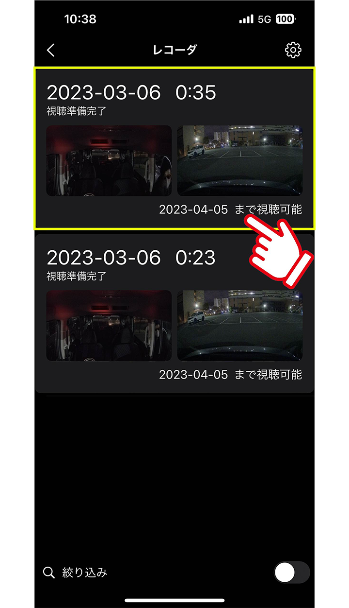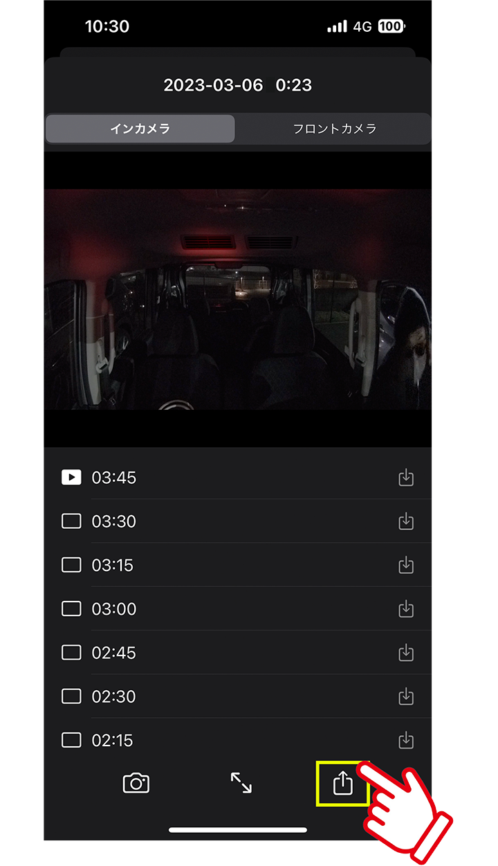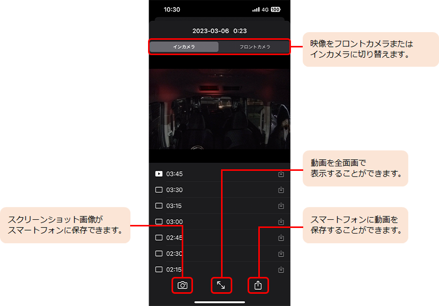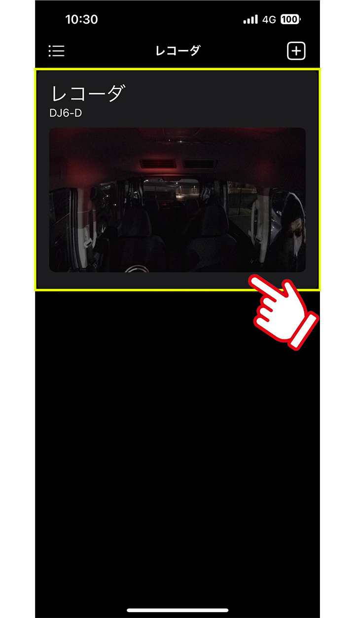※過去の映像を確認する場合はアプリTOP画面から再生するドライブレコーダーを選択後、再生するイベントをタップすることで確認できます。