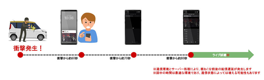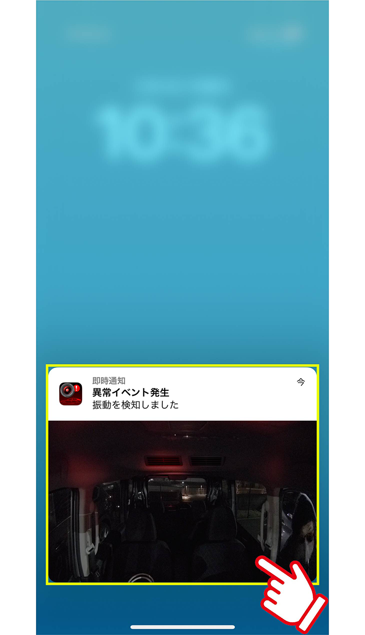イベント発生時に駐車録画が発生すると通知がお手元のスマートフォンに表示されます。