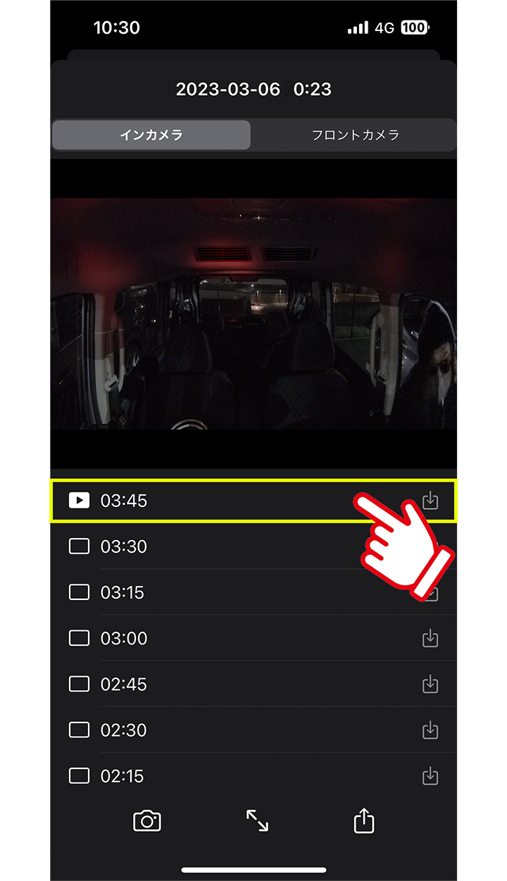 再生したい駐車録画のファイルをタップすると再生することができます。