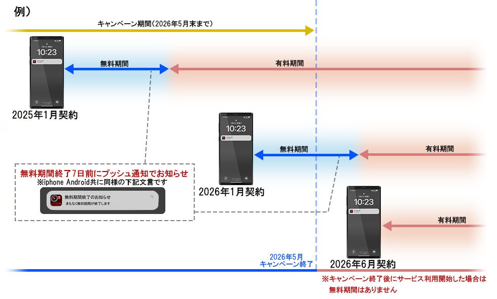 (無料期間終了の7日前にユーザーへプッシュ通知があります。)