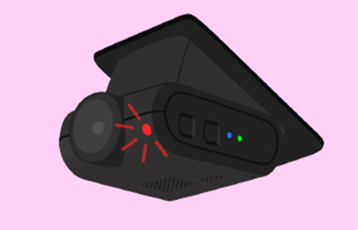 インカメラの駐車監視LED が点灯(赤色)して、「ドライブレコーダーが異常を検知しました。通報しました。」と音声ガイダンスが流れます。