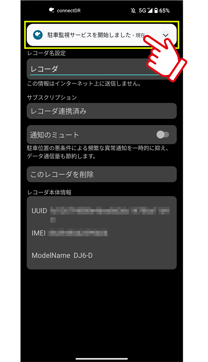 プッシュ通知をオンにしている場合、「駐車監視サービスを開始しました」とポップアップ通知がでます。