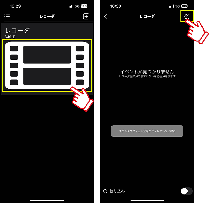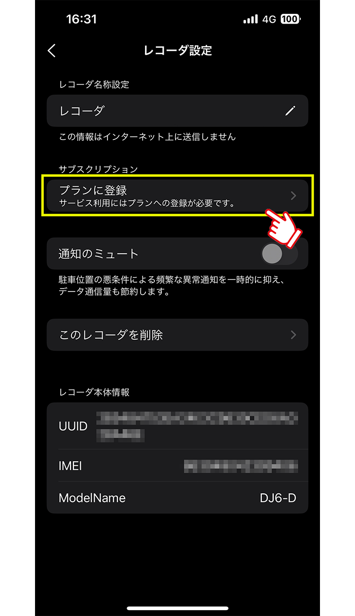 サブスクリプションの[プランに登録されていないレコーダです]をタップし、ドライブレコーダーを追加します。