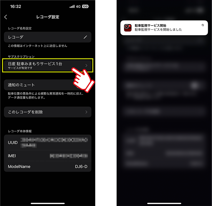 また、プッシュ通知をオンにしている場合、「駐車監視サービスを開始しました」とポップアップ通知がでます。
