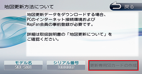 車両メーカー向けカーナビゲーションサポート情報 > 地図データバージョンアップ > 地図データのダウンロードについて > Step1:地図更新専用SDカードの作成(SKX-S801)