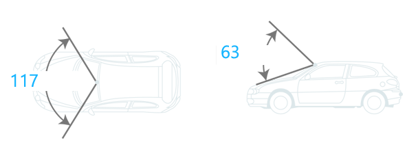 The wide-angle lens (horizontal: approx. 117°; vertical: approx. 63°) captures video from a broad viewing perspective.